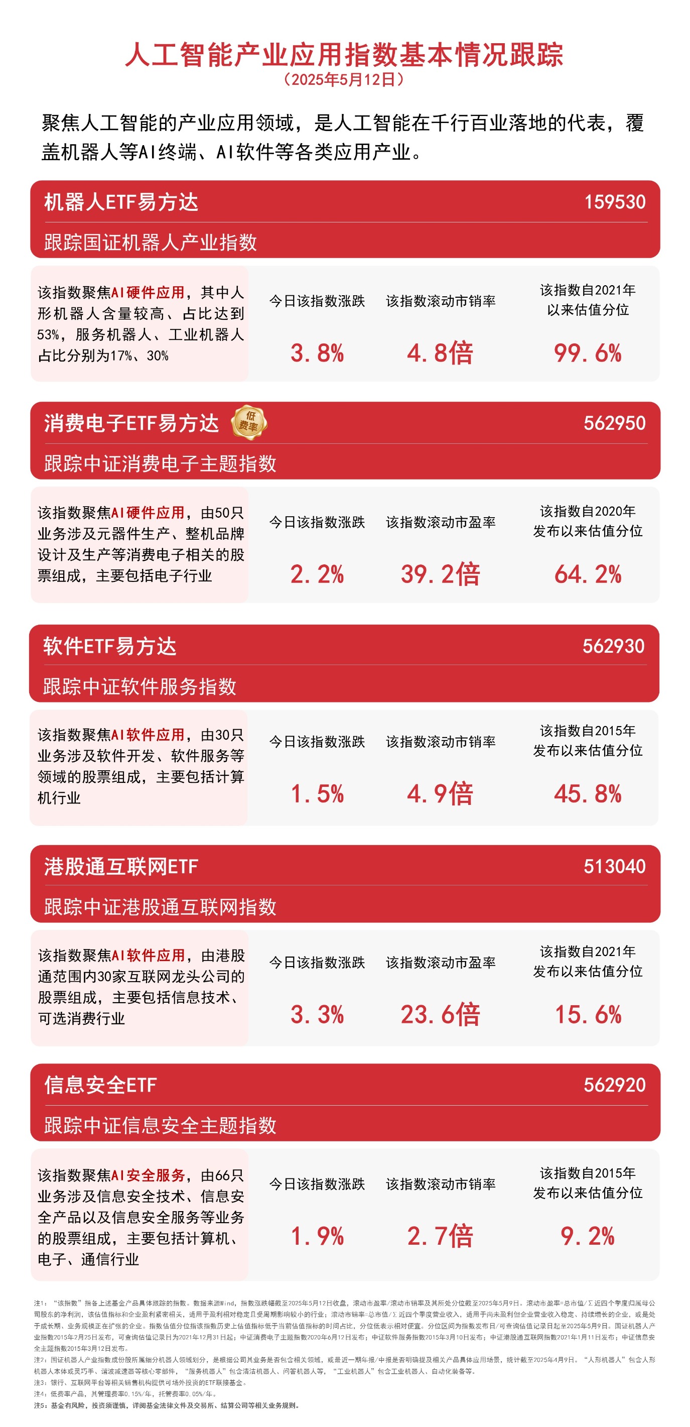 截至收盘,国证机器人产业指数上涨3.8%,中证港股通互联网指数上涨3.3%,中证消费电子主题指数上涨2.2%,中证信息安全主题指数上涨1.9%,中证软件服务指数上涨1.5%。国证机器人产业指数中人形机器人相关个股占比超50%,“人形”含量在所有ETF跟踪的指数中排名第一。